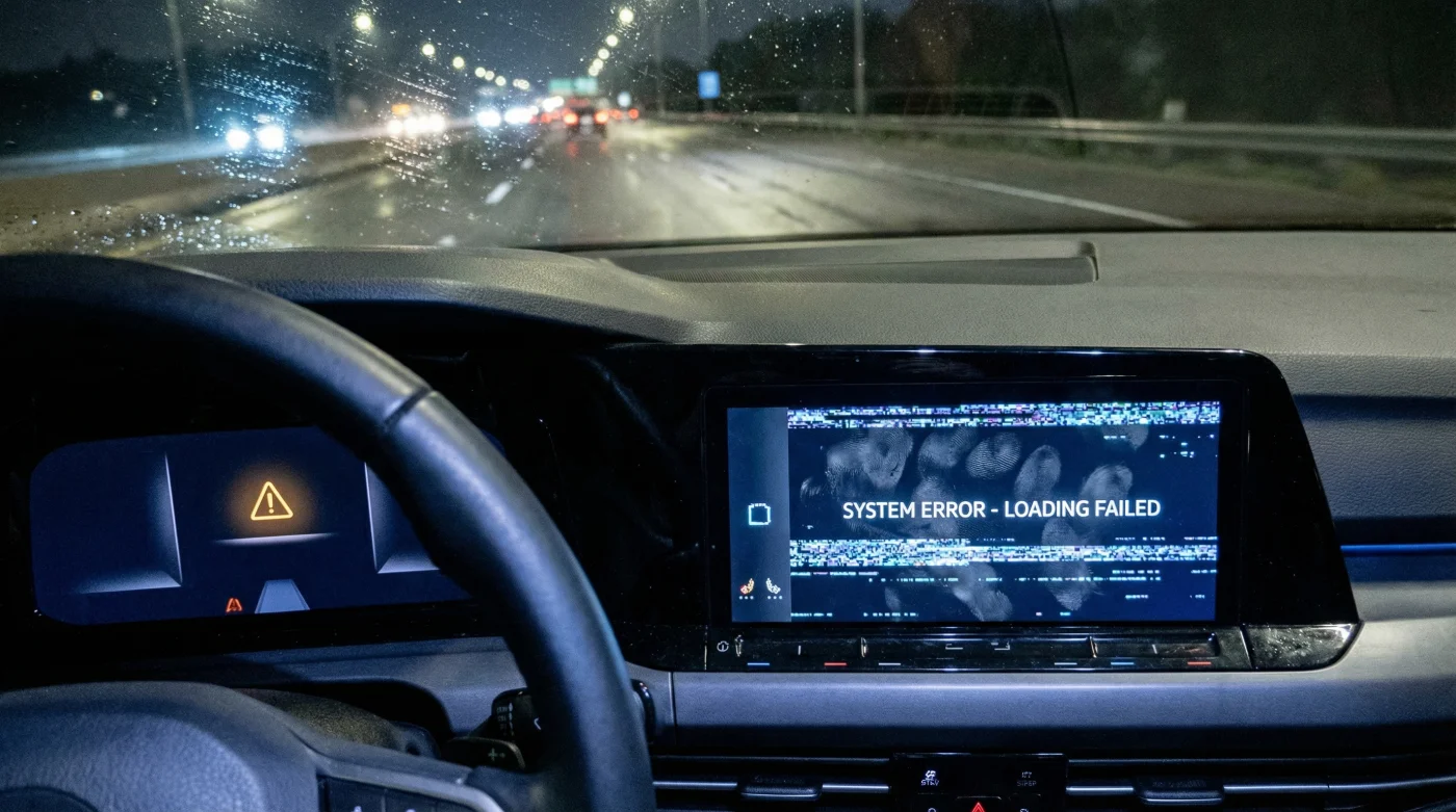 Instead, you press the starter button and wait. The digital dashboard flickers to life, but the central screen remains an eerie, unresponsive black void while the heater remains stubbornly switched off, leaving your breath visible in the chilled air as the system struggles to boot up.